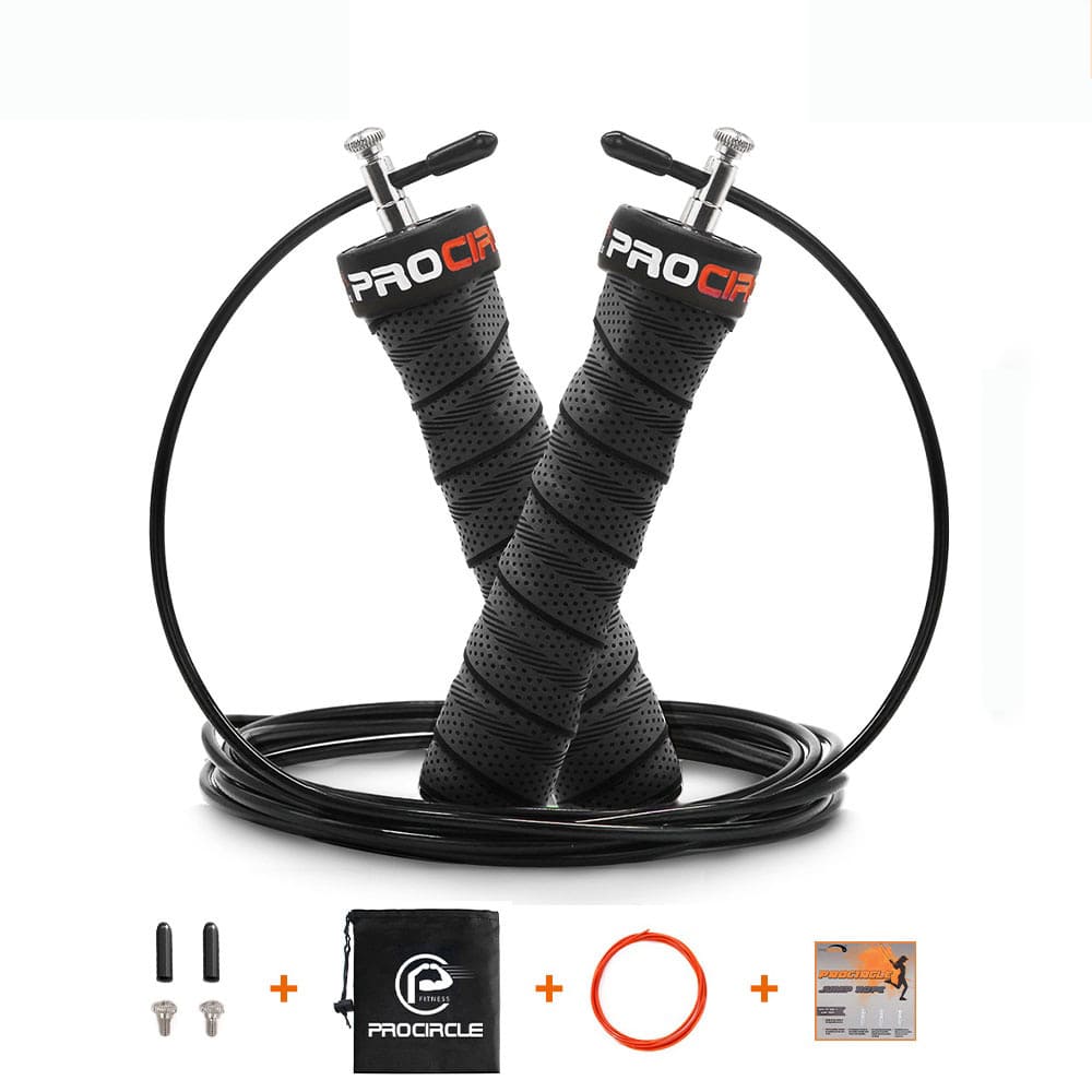 O pacote inclui : Corda de pular + cabo reserva + bolsa de transporte + instruções + conjunto de parafusos.