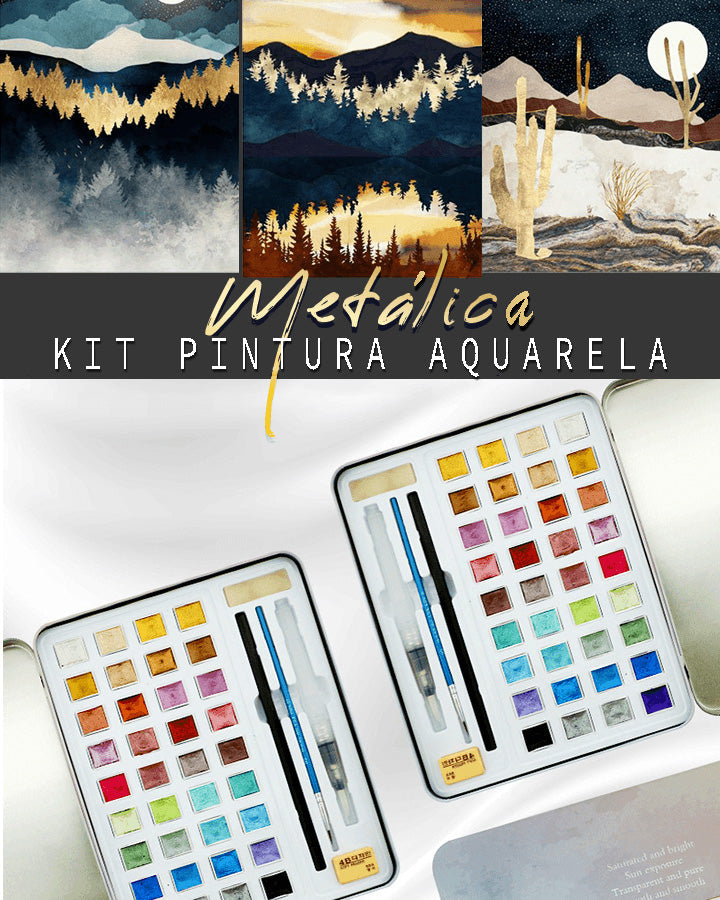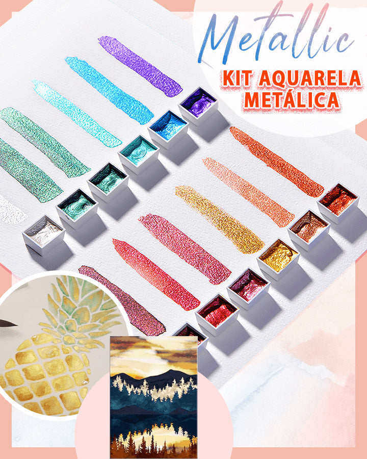 1x kit pintura aquarela metálica - 36 cores / 12 cores