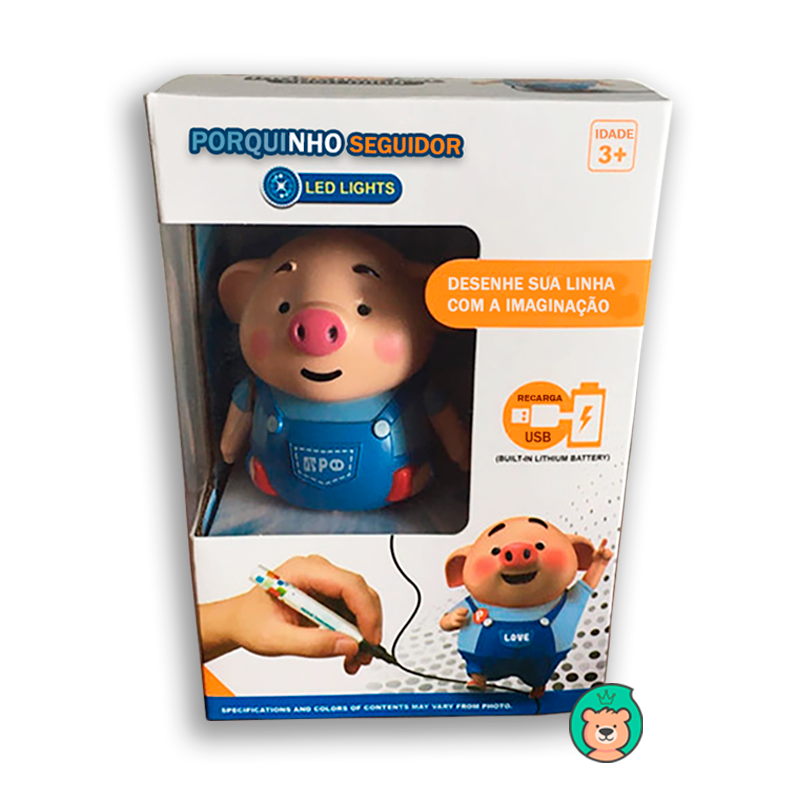 Você só precisa de um papel em branco e uma caneta preta, trace o caminho que o Porquinho Seguidor vai seguir! Carregamento via cabo USB incluso
