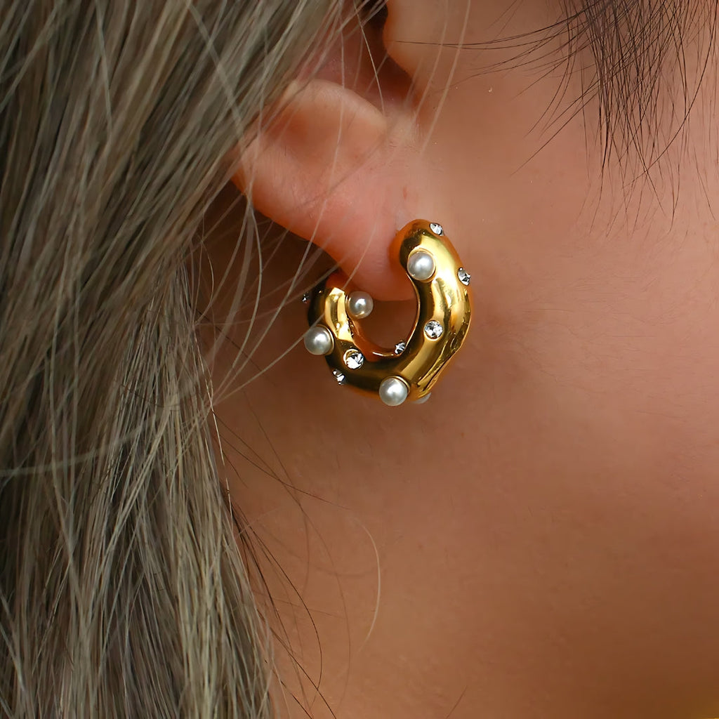 Descubra a sofisticação atemporal com o Brinco Argola Assimétrico com Pérola Banhado em Ouro 18k, uma peça autêntica da nossa exclusiva coleção clássica de semijoias.