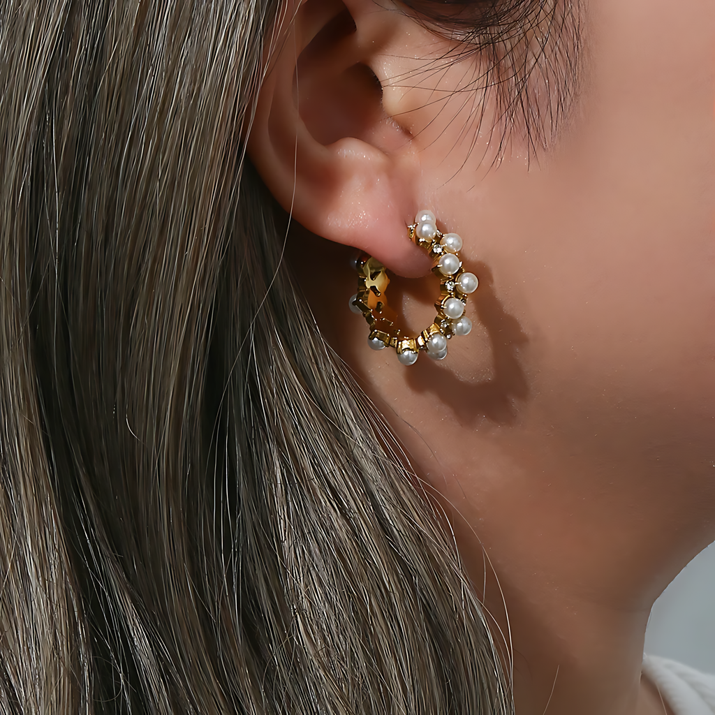 Descubra a sofisticação atemporal com o Brinco com Micropérolas Banhado em Ouro 18k, uma peça autêntica da nossa exclusiva coleção clássica de semijoias.