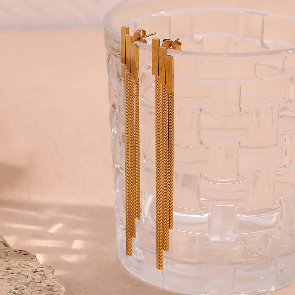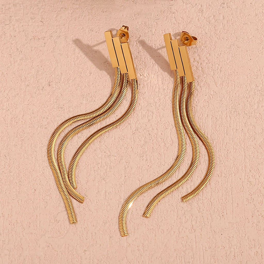 Descubra a sofisticação atemporal com o Brincos Femininos Corrente Tripla, uma peça autêntica da nossa exclusiva coleção clássica de semijoias.