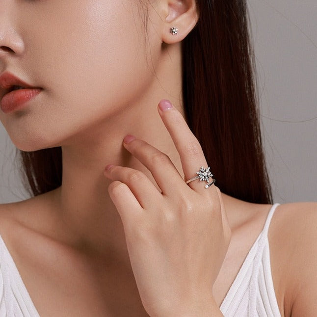 Nosso Conjunto Anel Ajustável e Brinco de Floco de Neve em Prata 925 conta com um design exclusivo e com cada detalhe pensado para completar e trazer mais beleza ao estilo de cada mulher. Prezamos pela alta qualidade das joias, utilizando os melhores materiais, livres de níquel, chumbo e todos hipoalergênicos.