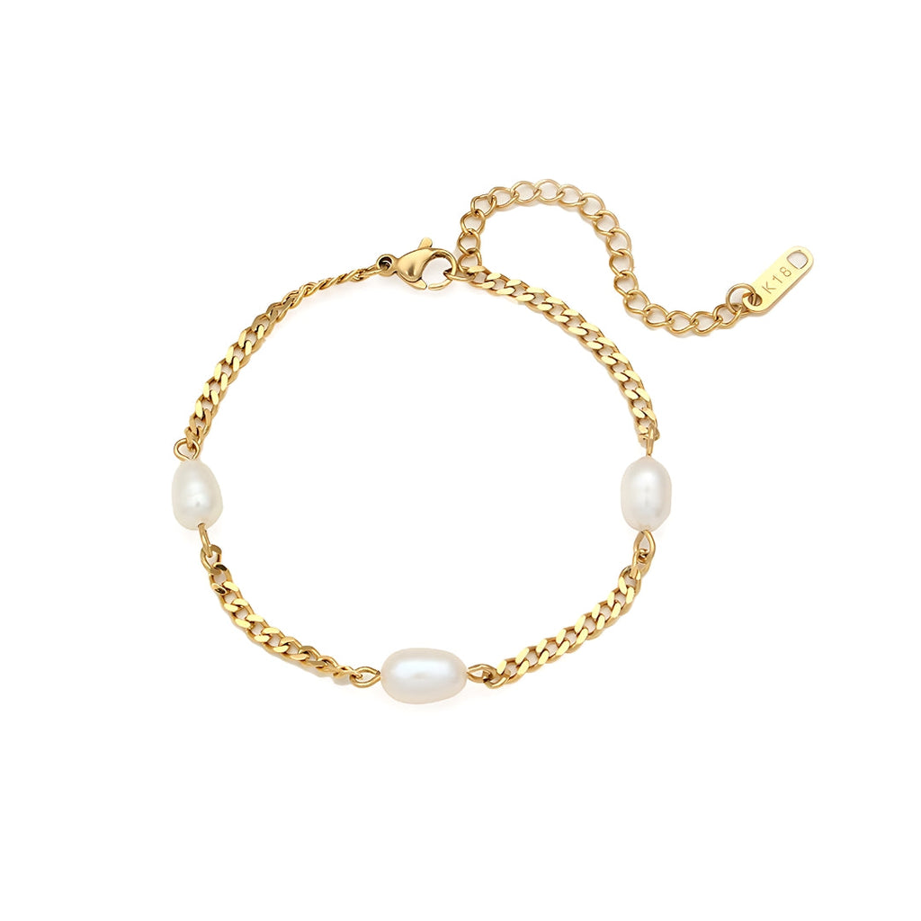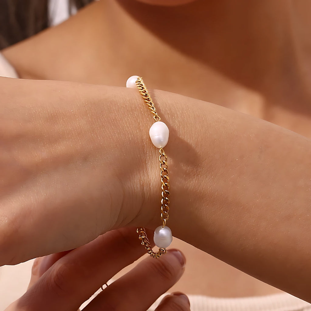 Descubra a sofisticação atemporal com a Pulseira Corrente com Pérolas Banhada em Ouro 18k, uma peça autêntica da nossa exclusiva coleção clássica de semijoias.