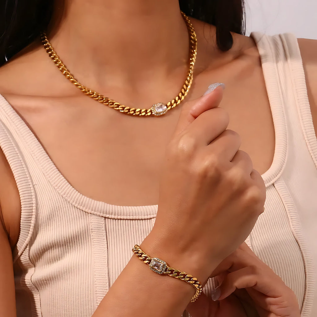 Pulseira Corrente Cravejada em Zircônia Banhada em Ouro 18k