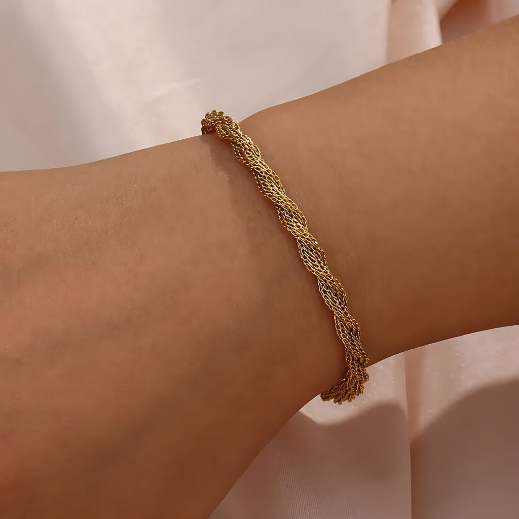 Descubra a sofisticação atemporal com a Pulseira Transversal Banhada em Ouro 18k, uma peça autêntica da nossa exclusiva coleção clássica de semijoias.