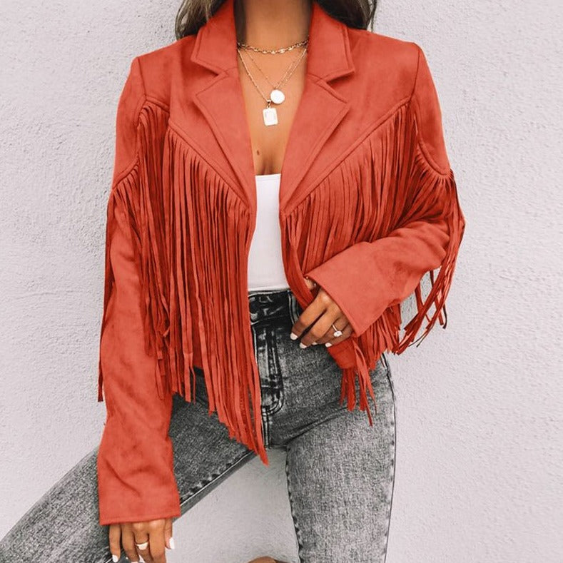 Jaqueta Feminina Eleanor: Desperte sua elegância com uma obra-prima de estilo. Seu design único com babado terracota atrai olhares e transmite confiança. O padrão sólido realça sua sofisticação. Feita com material de alta qualidade, esta jaqueta é a peça perfeita para elevar seu guarda-roupa. Aproveite o charme e o conforto da Jaqueta Eleanor. Compre agora e adicione um toque de distinção ao seu visual.
