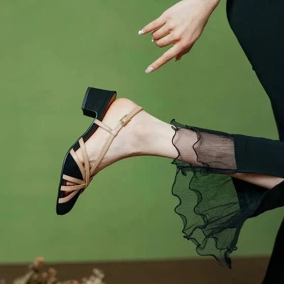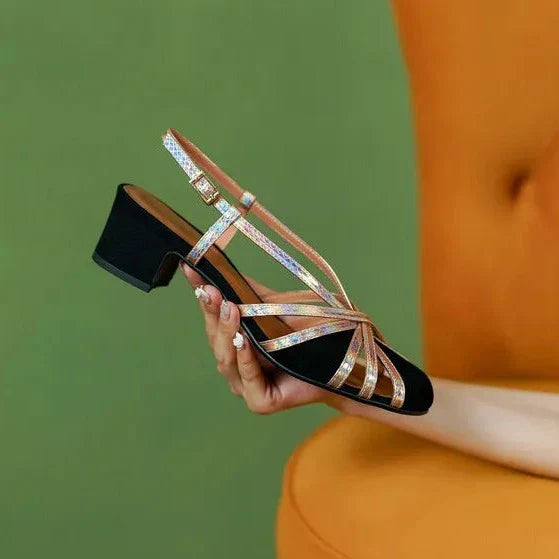 Com um salto quadrado de 4 cm, esta sandália combina perfeitamente conforto e estilo, permitindo que você desfrute de longos passeios à beira-mar ou de noites quentes de verão com elegância e sem esforço.