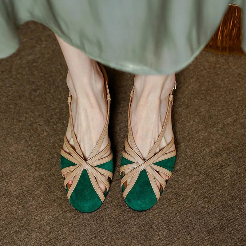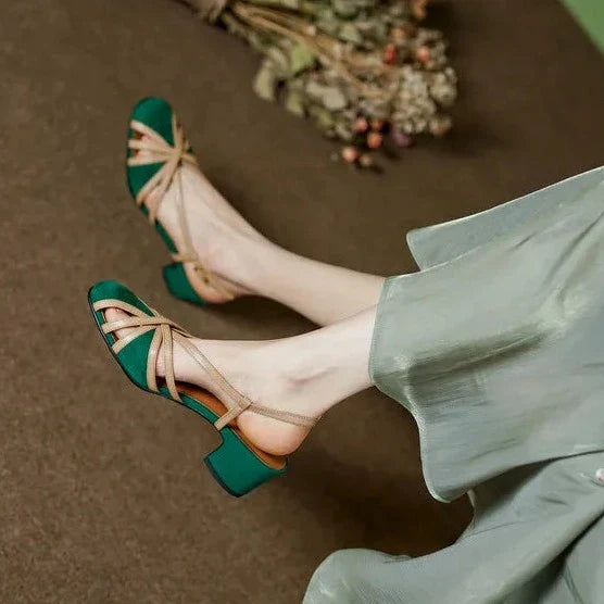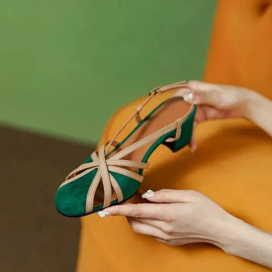 Feita de camurça de alta qualidade, esta sandália oferece uma sensação suave e luxuosa, enquanto suas cores vibrantes - verde e preta - refletem a exuberância da vegetação tropical e a elegância atemporal.