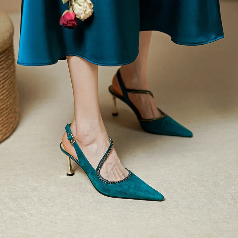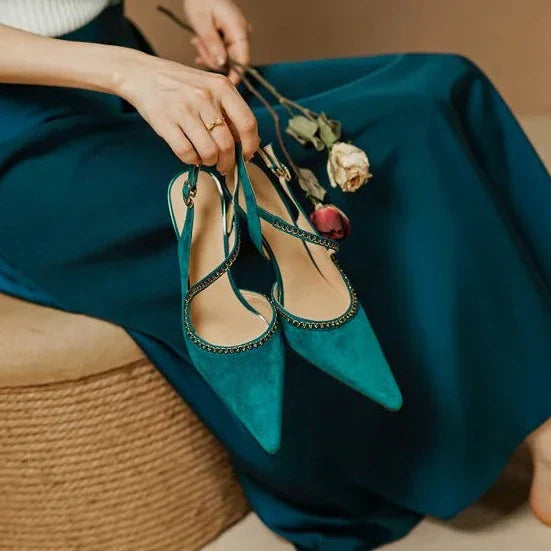 Coberto com couro suede de alta qualidade, o Salto Amalfi oferece uma elegância inigualável, além de uma durabilidade excepcional. Seu bico fino adiciona um toque de charme e estilo ao seu visual, enquanto o salto fino de 7 cm eleva a sua estatura e confiança, mantendo o conforto necessário para o dia a dia.
