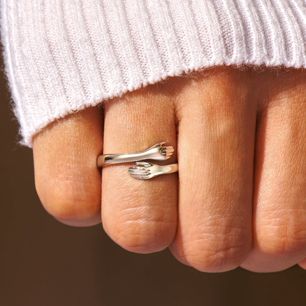 Anel do Abraço Prata 925 Ajustável - Compre 1 Leve 2 c/ Cartão Incluso